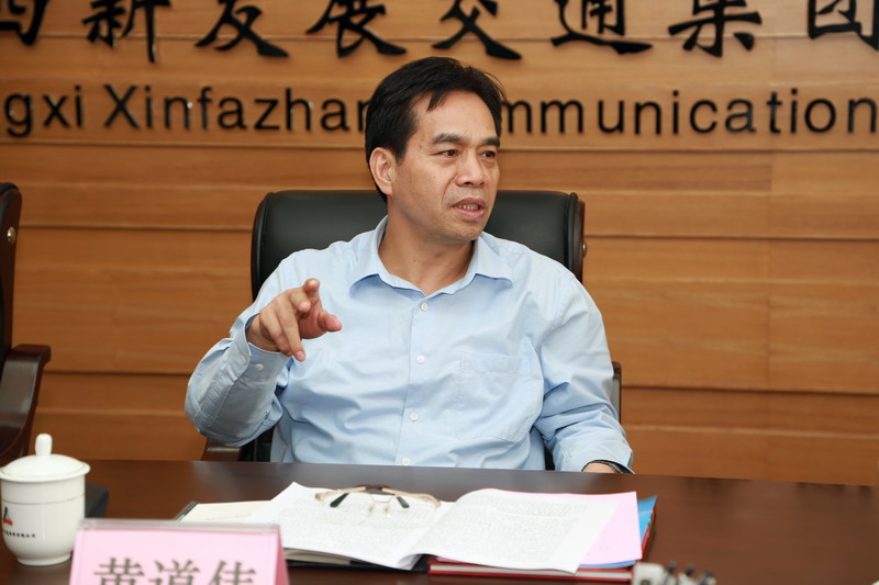 自治區政府副秘書長黃勝杰,自治區國資委主任管躍慶、自治區交通運輸廳副廳長梁毅、自治區國有企業監事會主席韋增忠等參加調研。集團公司領導班子、總部機關各部門負責人,以及直屬各單位負責人參加調研座談會。