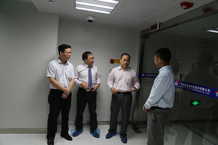 簽約儀式結(jié)束后,與會(huì)的各位領(lǐng)導(dǎo)共同參觀了我集團(tuán)公司控股企業(yè)——廣西捷通公司ETC中心機(jī)房,并聽取了技術(shù)人員對(duì)中心系統(tǒng)建設(shè)情況、設(shè)備安裝使用情況、機(jī)房運(yùn)轉(zhuǎn)流程、技術(shù)支持、監(jiān)控及操作、消防通道等情況的匯報(bào)。