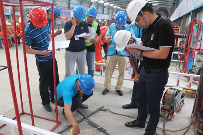 當參賽選手調(diào)試好設(shè)備,將比賽所需材料準備妥當之后,隨著主持人一聲令下,參賽選手立即嚴格按照相關(guān)安全操作規(guī)定,緊張而有序地進行鋼筋焊接。一時間賽場上焊花四起,引來不少技術(shù)工人觀摩學(xué)習。經(jīng)過兩個多小時的激烈角逐,各位參賽選手相繼完成焊接作業(yè)。評委小組成員仔細查看每一件參賽作品,嚴格按照評分標準采用儀器對鋼筋試件進行檢測評分。經(jīng)過評委小組客觀、公正、公平的評審。最終胡滿倉、韋加生等六名選手脫穎而出,分別以小組第一、第二名的成績,榮獲融河高速“最美工匠”稱號。