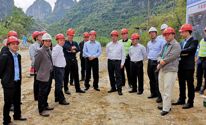 11月13日,柳州經(jīng)合山至南寧高速公路(即新柳南高速公路)項(xiàng)目建設(shè)指揮部暨新柳南公司、公司黨委在上林縣舉行揭牌儀式,標(biāo)志著項(xiàng)目建設(shè)邁入了全面實(shí)施的新階段。集團(tuán)公司領(lǐng)導(dǎo)高新、唐咸秋等參加揭牌儀式,并深入施工現(xiàn)場(chǎng)調(diào)研指導(dǎo)工作。